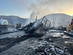 La tarde de ayer se registró un grave accidente en la Carretera Tuxcueca – Mazamitla, donde un vehículo tipo torton colisionó de frente con una pipa. Ambos vehículos quedaron totalmente calcinados tras el impacto.