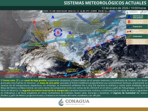 La Comisión Nacional del Agua (CONAGUA) informó que el ingreso del nuevo frente frío número 28, impulsado por una masa de aire polar, provocará cambios significativos en el territorio mexicano durante los próximos días, mientras el norte y centro del país enfrentarán un descenso térmico severo, el ingreso de humedad del Pacífico traerá lluvias importantes hacia el fin de semana.