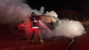 Cerca de dos horas después, a las 3:50 de la mañana aproximadamente les reportaron un vehículo incendiándose en la Autopista a Los Altos Km. 82, sentido hacia San Juan de los Lagos, también dentro del municipio de Jalostotitlán.