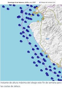 Por su parte en la zona de Cabo Corrientes, se prevé el impacto más fuerte con alturas de hasta 2.3 metros.